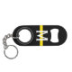 This thin yellow line dispatcher bottle opener and key chain has a simple but elegant design. It features a thin yellow line in the centre on a black background with a monogrammed initial in white typography for you to personalise. Makes a great gift for dispatchers.