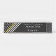 This elegant nameplate is the perfect choice for dispatchers. It features a thin yellow line design with stars and stripes at an angle on the left of the name plate. To the right is a name, workplace, and job title for you to personalise.