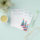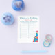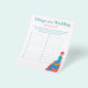 This fun game sheet is perfect for bridal showers. It challenges party guests to think of something they might see at a wedding that starts with each letter of the alphabet. If their guess is the same as the bride's guess, they get a point. This game sheet features an illustration of a historical woman in a bustle dress in bright colours of bright blue, hot pink and yellow.