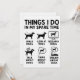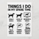 Funny dog lover quote with playful icons about walking dogs, looking at dogs, researching dogs, talking about dogs, thinking about dogs and dreaming about dogs. Ideal for dog fans who enjoy humor.