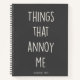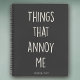 Modern Custom Name notebook with minimalist, stylish cool typography design reading THINGS THAT ANNOY ME in grey and white.