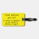 Think before you act luggage tag