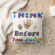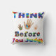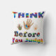 The message of “THINK Before You Judge” with hands of diversity and inclusion to respect people with autistic spectrum disorders and encourage kindness towards each other.
