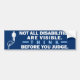 Not All Disabilities Are Visible Think Before You Judge Invisible Disability bumper sticker. Don't Judge My DIsability By Its Visibility bumper sticker. Sticker for disabled Americans who don't want to be judged because they suffer from a disability that isn't easily seen.