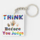 The message of “THINK Before You Judge” with hands of diversity and inclusion to respect people with autistic spectrum disorders and encourage kindness towards each other.