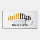 Chess players and die-hard chess players -- those who are seeking Grandmaster status -- will enjoy this desk mat featuring a reflective chess set with the saying "Think Chess". Promote chess today with this desk mat with a dose of sound chess advice!