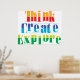 Think,Create and Explore is a great reminder that you can do these things to broaden your horizons. This will be a great addition to the classroom, campus or office. Educators get your students to think, create and explore the possibilities! Managers put this up in the workroom to inspire your employees.