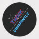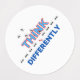 This design features a line of black ants marching diagonally across a white background. The ants are all facing the same direction, and they are all walking in a single file line. There is one red ant walking away from the line. The words "THINK DIFFERENTLY" are written in blue and red letters, with "THINK" in blue and "DIFFERENTLY" in red, positioned diagonally across the image. The words are positioned so that they appear to be following the ants, and they are also facing the same direction as the ants. The image is a simple but effective way to convey the message that it is important to think differently.