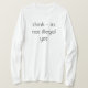 I love this shirt. I had written to the artist asking her if this picture was available on a shirt, and she wrote me back telling me where I could find the shirt. These shirts can be custom made to have a different saying. I loved this saying and went with it. The artist wrote me back later to tell me that she had seen my order go through. How's that for service? Pretty special. It's just as displayed. Perfect!