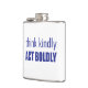 Well made flask, a little better than I had expected. Flask came in clear plastic box which gave it a nice presentation when I took it out of the zazzle packaging. Image is not printed on flask but on sticker. Don't know how this will hold up I haven't used it yet. This would make a Great gift! I plan to purchase more for friends! Cheers. I thought a little brighter than computer. Very crisp, writing wasn't
