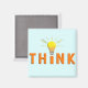 A simple design that says "Think" with a light bulb dotting the letter "I" in yellow and orange. There are wavy lines around the bulb that could arguably represent Albert Einstein's unkempt hair.