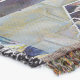 A quality printed throw has its advantages. This is a much finer weave throw than its loopier cousins, and though lighter, it is worth the investment for custom room accessorizing. The back is much prettier than the typical brown, and the fringe on the long sides very vivid, the selvage nicely done. Before photographing, I washed the throw in cold water, delicate, with a thicker woven throw the same size. On tumble dry low, this throw was dry in half the time as the other. This is a very practical quality if you use throws for furniture covers or to wrap up in frequently. The sleekness of the fabric makes it a great layer for accenting or protecting without the feeling of sitting on too much stuff. Perfect for napping or when you feel a light chill coming on. The color printing is beautiful and on this fabric, matched the design and color of my Photoshop image. This is an advantage for blending room fabrics and colors. The fringe on the short sides prints the colors from the design image and therefore varies from the side fringe. I streaked a white fractal line through the plaid pattern to give the illusion of weaving. This printed as crisp as an illusory thread, and put some white in the short side fringe, showing another advantage of print vs loomed- for artistic purposes, line lines, detail, and color integrity can be planned and preserved. My loomed throws have color limitations and more of a needlepoint texture. Print throws reproduce an exact image. The throw felt a little stiff straight out of the package, but this went away in the first delicate wash. Of course I searched the wash water for ink or bleeding and there was none.