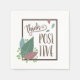 Calligraphy inspirational quote, think positive paper napkins. Feather boho floral design in brown frame, cute pattern party napkins