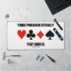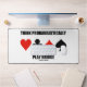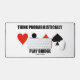 Bridge attitude is alive and well on this desk mat featuring the four card suits along with the following sound bridge / duplicate bridge advice: "Think Probabilistically Play Bridge". Make others do a double-take with a dose of bridge humour at your next bridge game with this memorable bridge saying desk mat. No need to be a bridge teacher or avid bridge player to enjoy!
