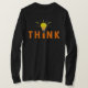 A simple design that says "Think" with a light bulb dotting the letter "I" in yellow and orange. There are wavy lines around the bulb that could arguably represent Albert Einstein's unkempt hair.