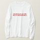 I love this shirt. I had written to the artist asking her if this picture was available on a shirt, and she wrote me back telling me where I could find the shirt. These shirts can be custom made to have a different saying. I loved this saying and went with it. The artist wrote me back later to tell me that she had seen my order go through. How's that for service? Pretty special. It's just as displayed. Perfect!