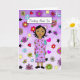 Pretty card with hand drawn whimsical folk art flowers and lady Missing You card with darker skin woman to represent different ethnicities.
