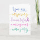 Remind someone fighting cancer to remember who they are and that you are thinking of them with this unique calligraphy style typography design, featuring this message in colourful watercolor style: "You are inspiring, beautiful, courageous, amazing." The "L" in the word beautiful is a lavender ribbon (symbolising all types of cancer). Inside has this message, but can be customised to fit your personal needs. Cancer has the power to impact your life in a way you didn't choose and don't deserve. But, it does NOT have the power to change who you are. You are inspiring, beautiful, courageous, amazing. Remember this, believe it, and you WILL win.