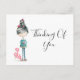 "Thinking of You" Cute Boho Girl With Bird Postcard