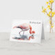 Flamingo with water reflection in a watercolor art for thinking of you.