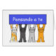 Four cartoon cats holding up a deep blue banner that says 'Pensando a te' in white text which means 'Thinking of you' in Italian.