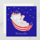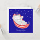 Thinking of You kitty cat in hammock with stars on royal blue background. Text can be personalised. Ideal for friends, relatives, partner and more.