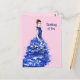 Based on watercolor fashion illustration by myself Farida Greenfield. Beautiful girl with dark hair wearing a stunning sparkly electric blue ballgown. The design has texts that can be personalised with text of your preference.