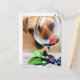 A puppy dog looking through a wine glass with an expression, Like it wants to say: Thinking of You,I Miss You, Hello, Love You,etc. by Elenne Boothe