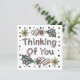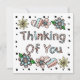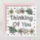 Pink and blue whimsical hand drawn flowers and thinking of you card for a friend or family member.