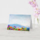 Thinking of you. A mixed media image of colourful wildflowers against the silhouette of misty mountains in the morning mist. Inside reads: Though mountains may separate us, you are always the flowers in my heart. Personalise by adding your own theme and words of sentiment to the front and inside of the card. Credits: Photography by A Fleeting Moment Photography, Partial digital Art rendered by Vision FX, Edited photo effects by TopazLabs.
