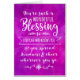 Let someone know you are thinking of them and what a blessing they are in your life with this elegant hand lettering style typography design. Front of card features message in white, "You're such a wonderful blessing to everyone who knows you and you spread kindness & cheer wherever you go." Design appears on digitally textured purple watercolor background.