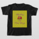 The t-shirt feels and looks great quality, a good thick cotton. It will be a little big for my son, but that means he will be able to wear it and not out grow it too soon. The print was as described on the order when personalised. True size, shape and colour T-shirt- thanks.
