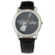 Cool black leather strap men's watch featuring Third Fusion Bass Guitar Black design - great for musicians and music fans.