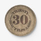 Thirsty 30 paper plates are perfect for accenting your 30th birthday bash featuring vintage whiskey barrel imagery.