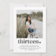 A modern 13th Birthday invitation featuring your own photo and the word 'thirteen' with a heart underneath.
