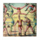 Vintage graphic print of thirteen men doing acrobatics. circa 1891.