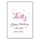 Thirty birthday pink glitter stars black 30th date table number