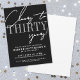The party details are arranged neatly at the bottom in classic white serif fonts, keeping the layout minimal and refined. The invitation has sleek black backgrounds on the front and white on the back. All colours can be customised to match your theme or personal style.