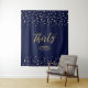 This modern tapestry is perfect for a chic black and gold colour theme birthday party. Your guests will enjoy taking a photo with this sophisticated party backdrop and remember your special day. The design features golden typography " Thirty " and hexagon confetti on a navy blue background. You can personalise the name, event, and date at the bottom of the tapestry. More invitations and party supplies are available at my shop BaraBomDesign. Thank you!