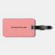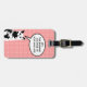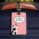 A cartoon speech bubble, with the text inside "hey! this baggage belongs to" where you can complete the phrase with your own name, or company name. Easily edit it using the "customise it" button and make the necessary changes - a feminine and delicate item with a black cat graphic on a white polka dots background - you can change the pink colour