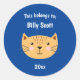 This Belongs to Back to School Kitty Cat Face Blue Classic Round Sticker