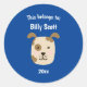 This Belongs to Back to School Puppy Dog Face Blue Classic Round Sticker