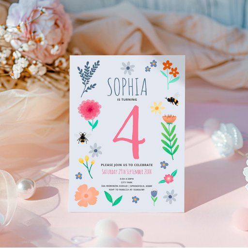Kids Cute and Whimsical Bumblebee Bee and Flowers Designed by Aimee Marie Gray