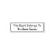 This self-inking stamp is a text template that you can edit to show a custom message. Currently, the top line of the display text says This Book Belongs To. The bottom line is for the teacher's name (Shown: Mrs. Johnson's Classroom). A border appears around the text.
