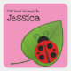 This pink book label sticker has a cute ladybug on a green leaf and you can customise the sticker with your message and name. There's black display text you can edit to create a custom message and add the child's name (shown: 'This book belongs to Jessica').