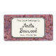 Rural book label intended for students or bookworms in general. Background is a photo of pink rock texture.