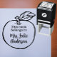 Make your mark on books in your school, classroom, or library with our Custom Teacher's Self-Inking Book Stamp. This convenient stamp features the phrase "This book belongs to" framed by an illustration of a charming apple, symbolising knowledge and education. The custom teacher's name adds a personal touch, allowing you to easily customise the stamp. With its self-inking mechanism, this stamp ensures efficient and consistent impressions every time. Perfect for labelling books, this stamp helps create a sense of ownership and organisation in your educational environment. Add a professional and personalised touch to your classroom library with this custom book stamp and let your students know that the book they are borrowing are part of a valued collection.