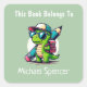 This Book Belongs To Cute Boys Dinosaur Green Square Sticker