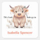 Personalised name girl cute modern highland cow on white background, this book belongs to ideal for gift for kids to put on there books or on there back to school supplies, so nothing gets lost.