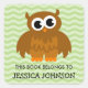 This book belongs to brown owl bookplate label stickers. Cute forest animal design for grammar / elementary school kids. Green zig zag chevron pattern background. Custom school supplies with personalised name of child. Square or round shape.